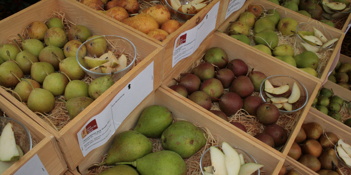 Au royaume des poires, on distingue les poires à cidre et les poires de table. Les poires à cidre contiennent beaucoup de tanins lorsqu'elles sont cueillies, ce qui ne les rend pas très digestes. Plus les tanins sont éliminés au cours de la conservation, plus les fruits deviennent "blettes", c'est-à -dire bruns et mous, ce qui ne donne pas forcément envie de les croquer, bien qu'ils soient alors très épicés. En revanche, elles se prêtent parfaitement au pressage ou à la distillation. Les poires de table ne peuvent toutefois pas toutes être consommées directement sur l'arbre. La poire 'Curé', par exemple, est récoltée en octobre, mais doit être stockée jusqu'en décembre pour développer tout son arôme et estdégustée pour la Saint-Nicolas.