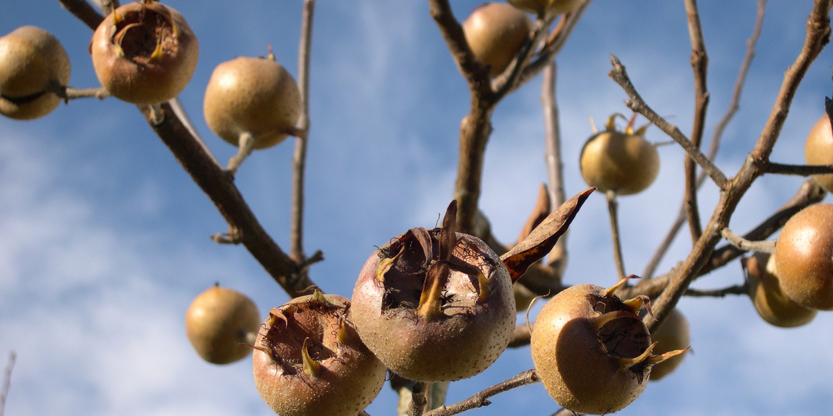Je ne transforme pas toutes mes nèfles, loin de là , par manque de temps, mais aussi parce qu'elles sont très décoratives sur l'arbuste. Elles restent généralement accrochées bien plus longtemps que les feuilles et lorsqu'elles se détachent en brun doré sur le ciel bleu par une journée ensoleillée de fin novembre, ce spectacle n'a rien à envier aux fleurs d'un blanc éclatant du printemps en termes de beauté. Et les oiseaux se délectent des fruits dès qu'ils sont à terre.