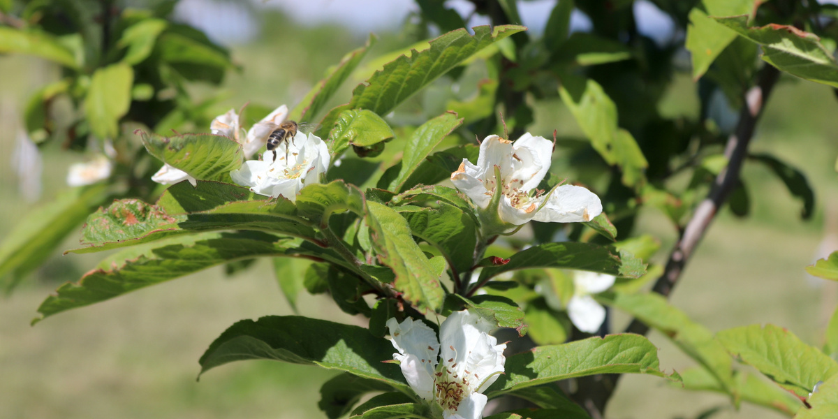 Comme toutes les autres variétés de fruits courantes chez nous, les néfliers font partie de la famille des rosacées, reconnaissables à leurs grandes fleurs blanches à cinq pétales, lumineuses au milieu du feuillage en mai et sont très appréciées des insectes.